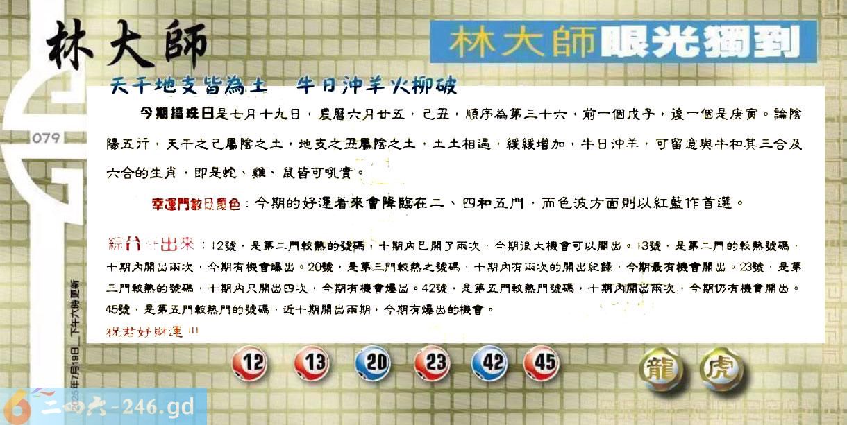 六合彩079期:更新100%〓2025乙已年香港掛牌之全篇(图库版)