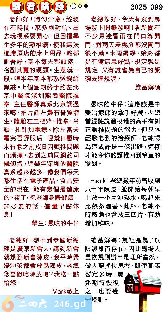 第零九九期讀者論談