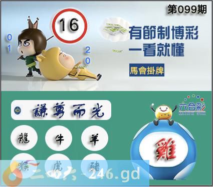 099期正版彩图挂:16爆:鸡挂牌成语:谦尊而光挂牌出肖:龙牛羊猴虎猪