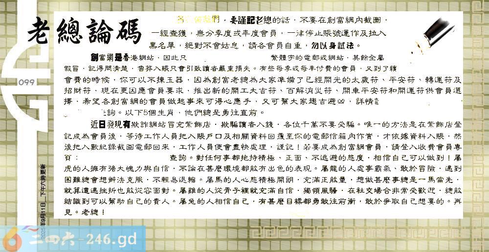 六合彩099期:六合皇金句/老总论码/萧公子/林大师/五行夺码/老总信箱截图