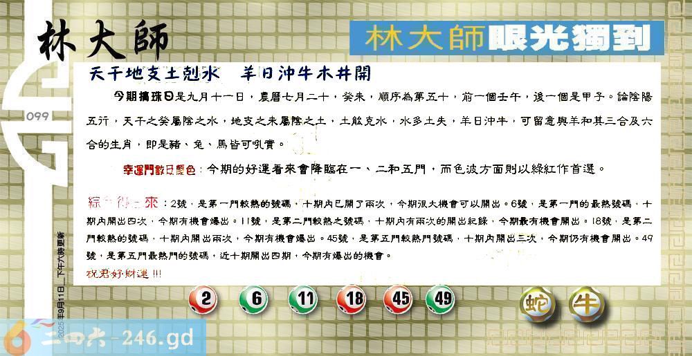 六合彩099期:更新100%〓2025乙已年香港掛牌之全篇(图库版)