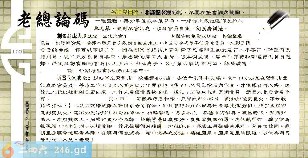 六合彩110期:六合皇金句/老总论码/萧公子/林大师/五行夺码/老总信箱截图