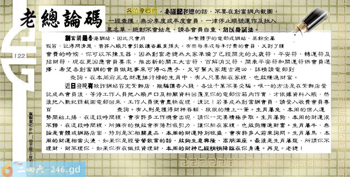 六合彩122期:六合皇金句/老总论码/萧公子/林大师/五行夺码/老总信箱截图
