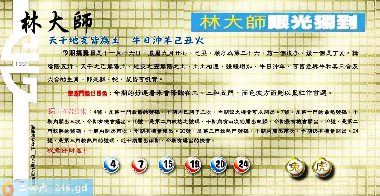 六合彩122期:更新100%〓2025乙已年香港掛牌之全篇(图库版)