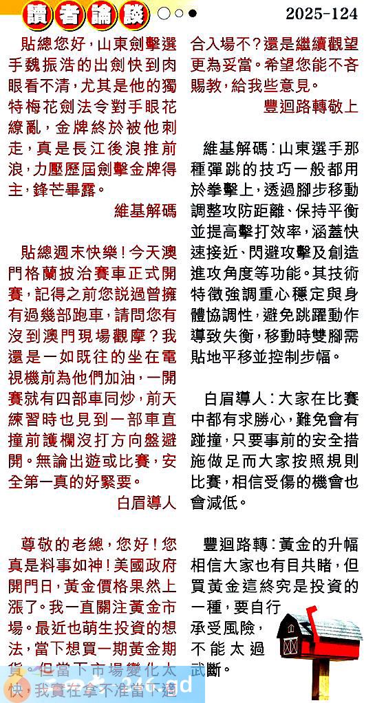 第一二四期讀者論談