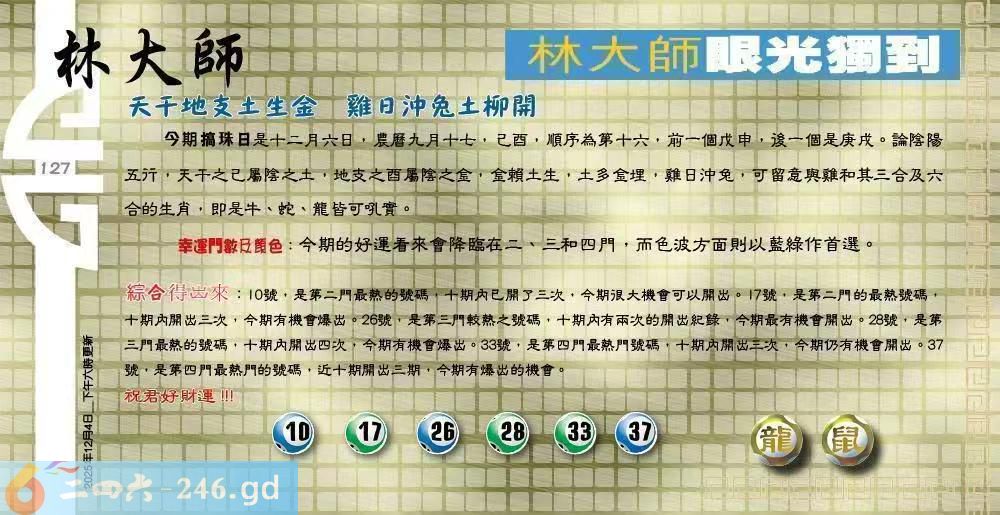 六合彩127期:更新100%〓2025乙已年香港掛牌之全篇(图库版)