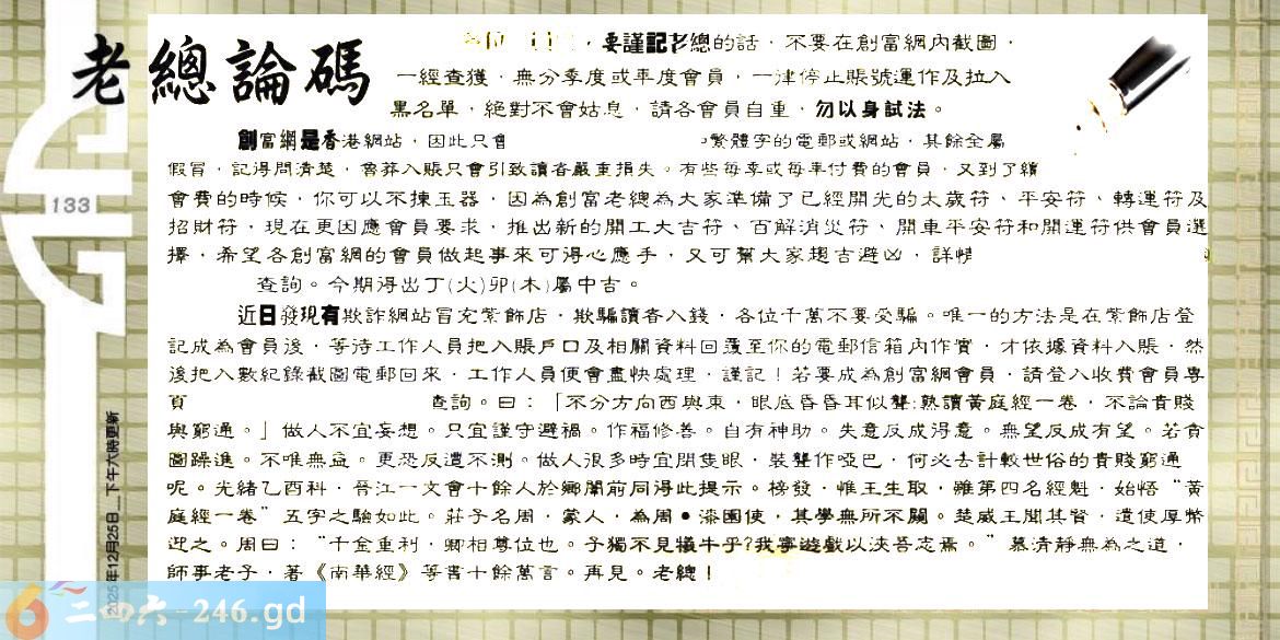 六合彩133期:六合皇金句/老总论码/萧公子/林大师/五行夺码/老总信箱截图