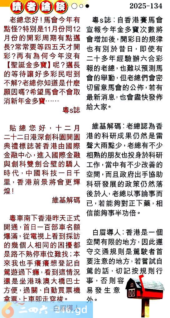 〖粵誌〗:自香港賽馬會宣報今年金多寶次數將會增加後,開彩日的規律也有別於昔日,即使有二十多年經驗辦六合彩報的老總,也難以預測馬會的舉動,但老總們會密切留意馬會的公佈,若有最新消息,也會盡快發饰給大家。