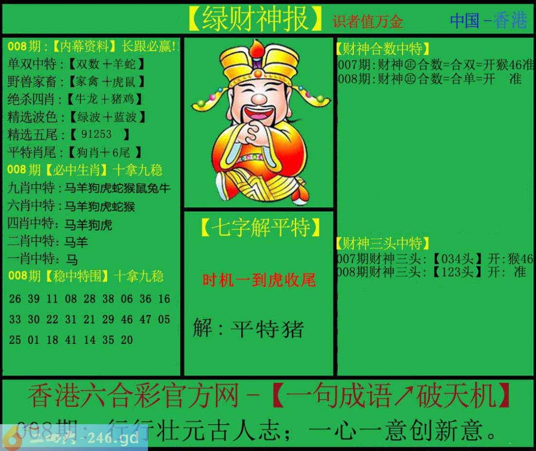 六合彩008期:绿色财神