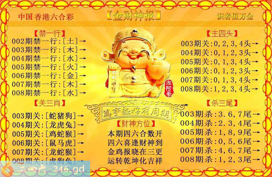 六合彩008期:金色财神