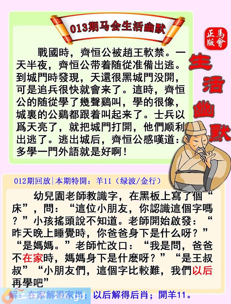 六合彩013期:马会生活幽默