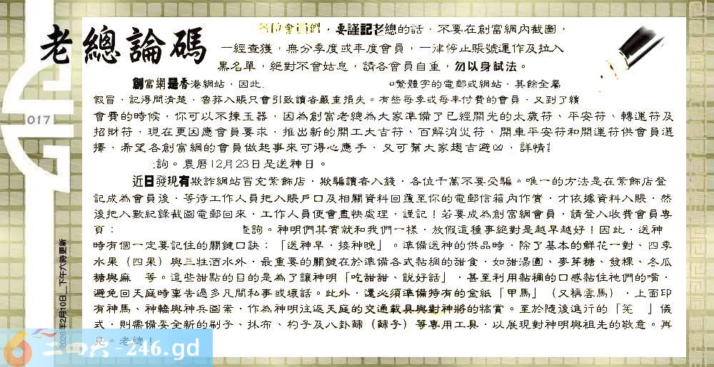 六合彩017期:六合皇金句/老总论码/萧公子/林大师/五行夺码/老总信箱截图
