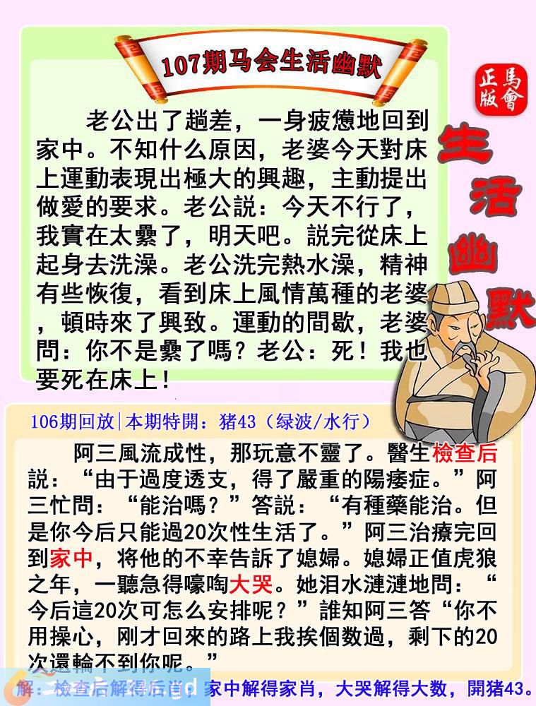 六合彩107期:马会生活幽默