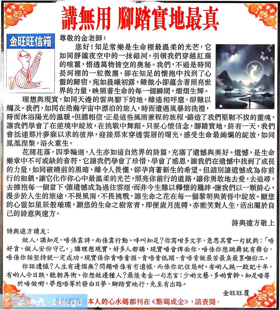 六合彩107期:金旺旺信箱彩民推荐→→《讲无用 脚踏实地最真》