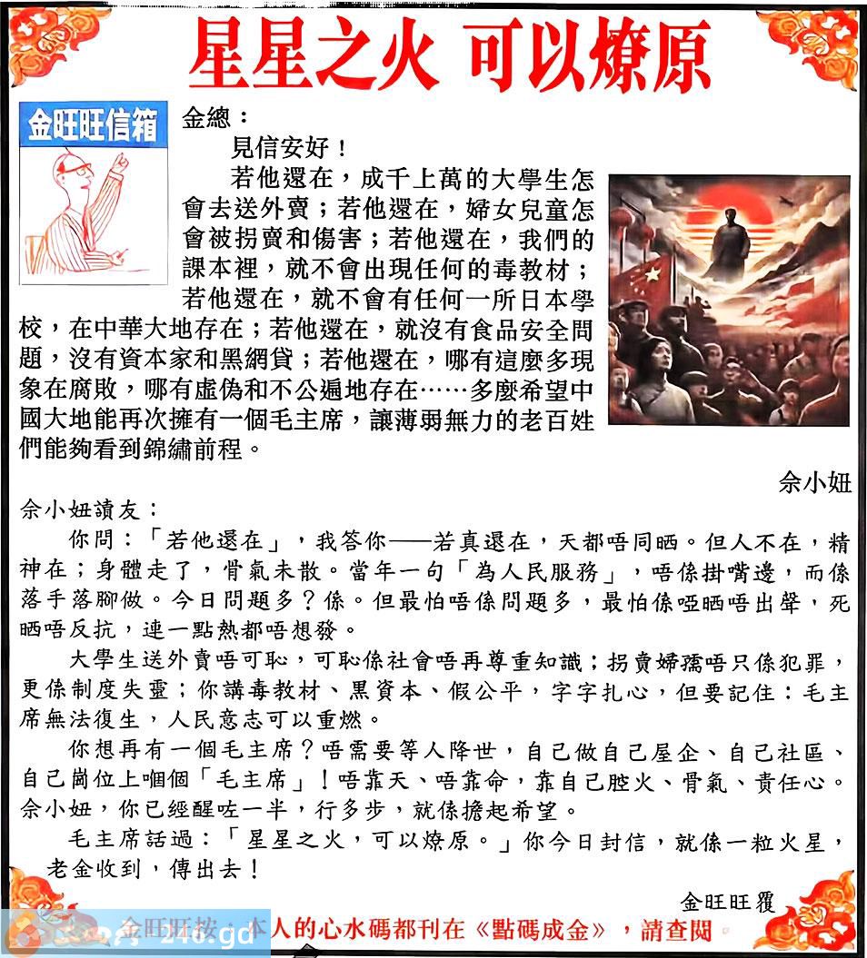 六合彩108期:金旺旺信箱彩民推荐→→《星星之火 可以燎原》
