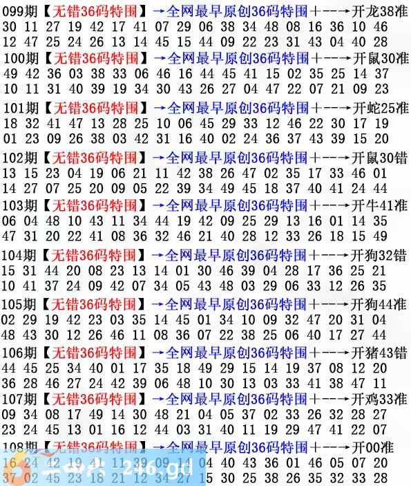 六合彩108期:无错36码