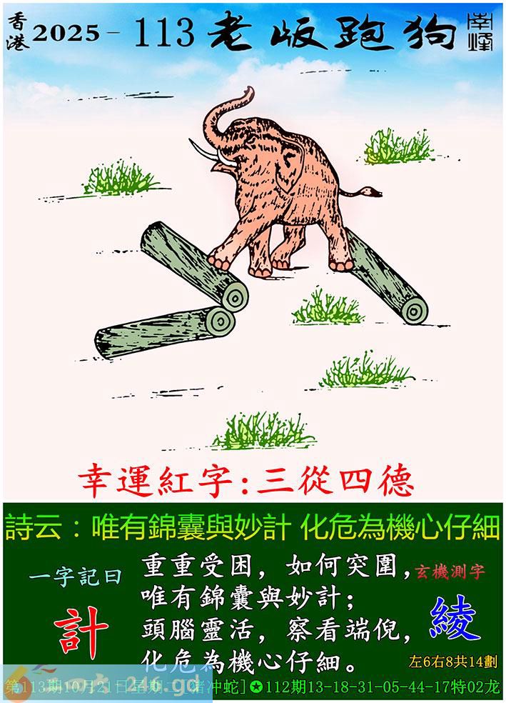 六合彩113期老版跑狗一字記之曰:【計】 詩雲:唯有錦囊與妙計,化危為機心仔細。