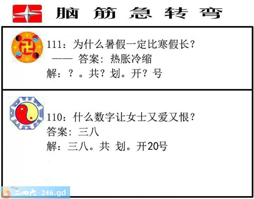 六合彩111期:脑筋急转弯