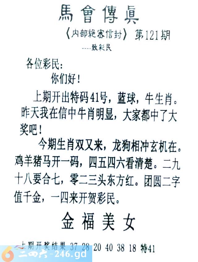 六合彩121期:首发推荐:≮馬會傳眞≯→(香港正版)
