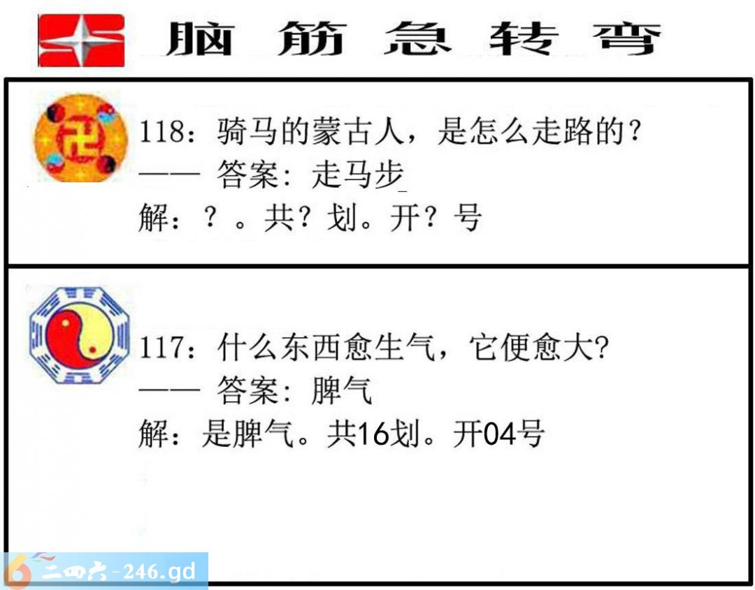 六合彩118期:脑筋急转弯