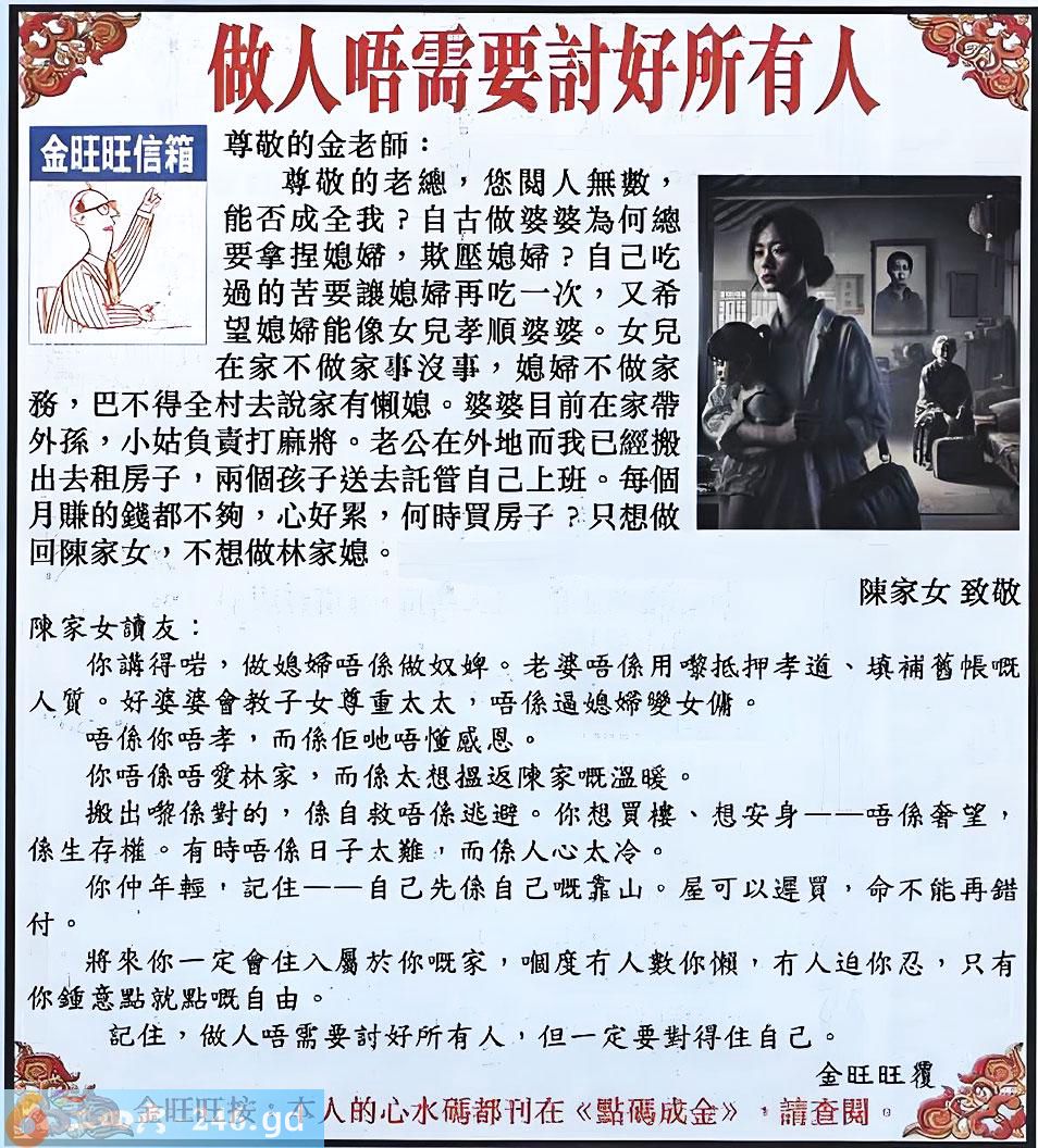 六合彩126期:金旺旺信箱彩民推荐→→《做人唔需要討好所有人》