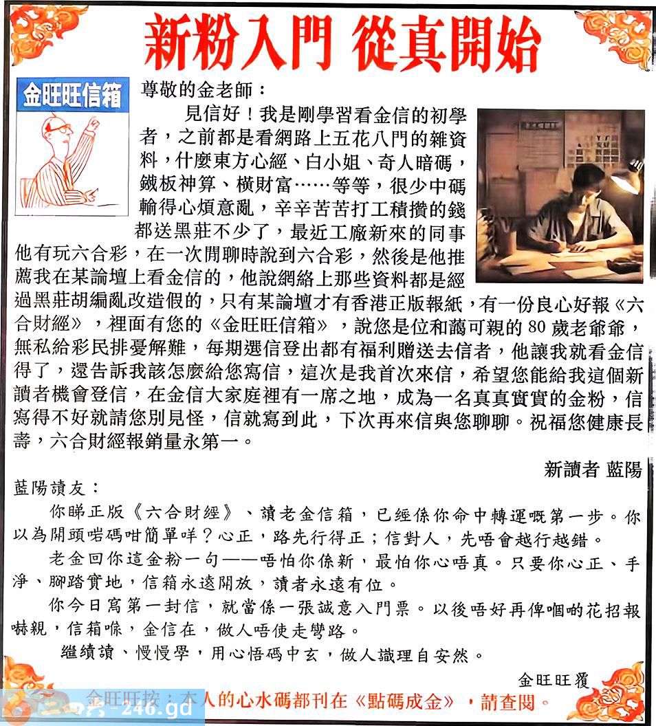 六合彩123期:金旺旺信箱彩民推荐→→《新粉入門 從真開始》