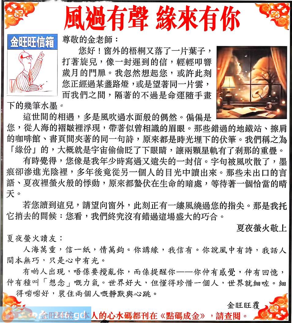 六合彩131期:金旺旺信箱彩民推荐→→《風過有聲 緣來有你》