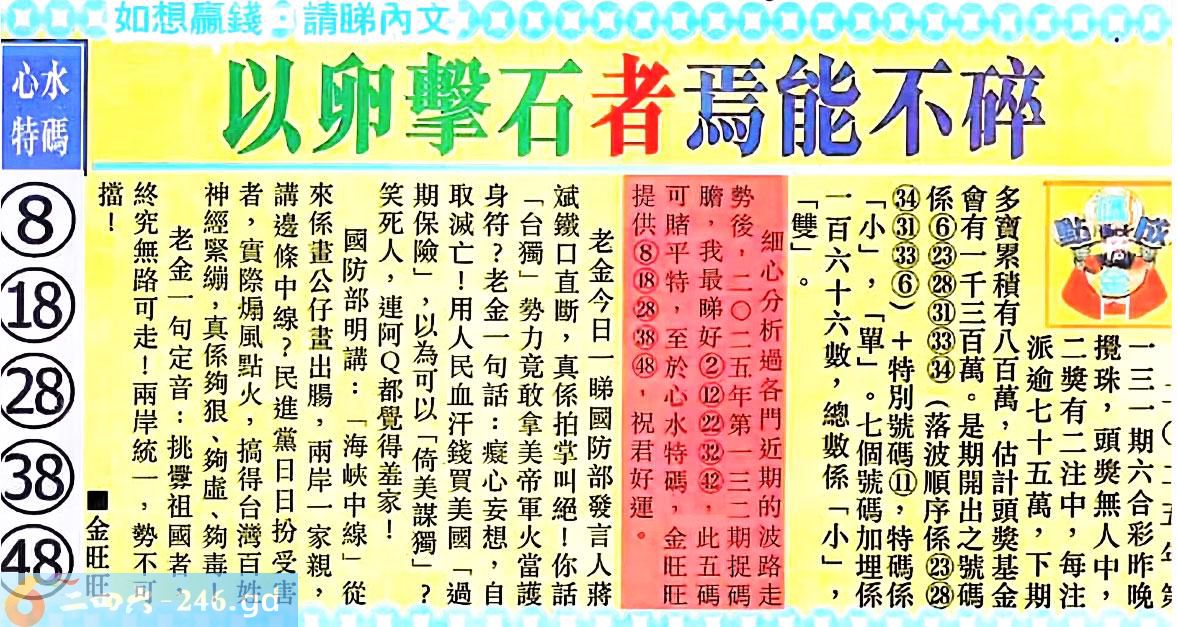 六合彩132期:金旺旺信箱彩民推荐→→《成見誤人要看清》