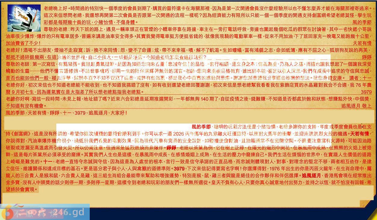 【6】.老總你好啊,寫信一段時間,未見上報,地址錯了嗎?近來六合彩總是延期推遲開彩,一年都無夠140期了,自從疫情之後,錢難賺,不知道是否都處於飽和狀態,想賺點外快,中個獎,不知道有沒有機會。追風逐月敬上