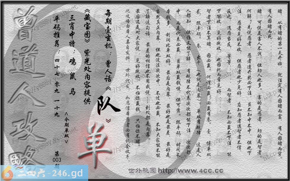 六合彩003期藏寶圖 新:君今旧隐治叁径 老:交游相见休相问 禁:狗 禁:3尾 玄機字:《队》