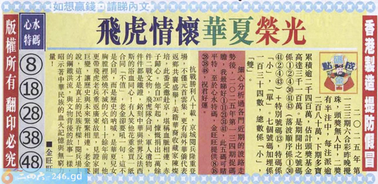 六合彩134期蓝天报(之无锋版)