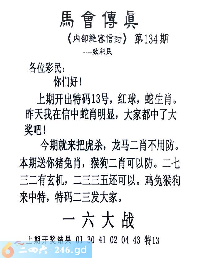 六合彩134期:首发推荐:≮馬會傳眞≯→(香港正版)