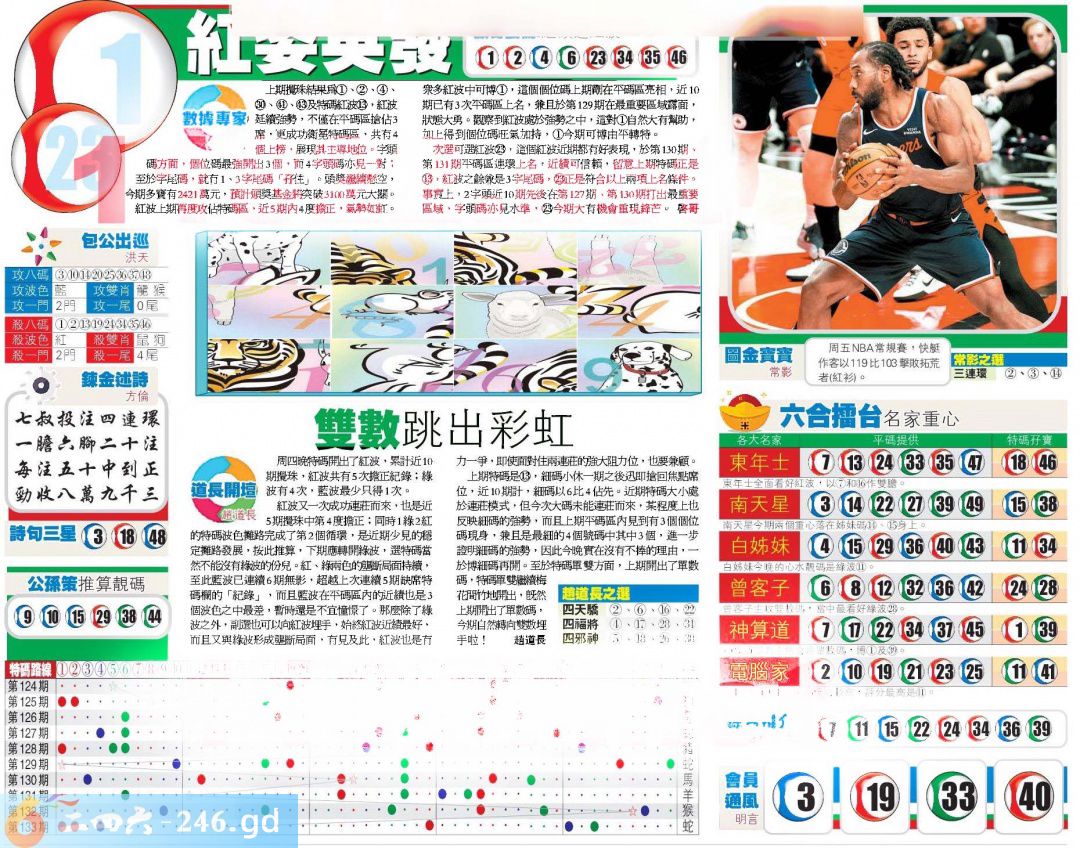 六合彩134期MarkSix金版双烧