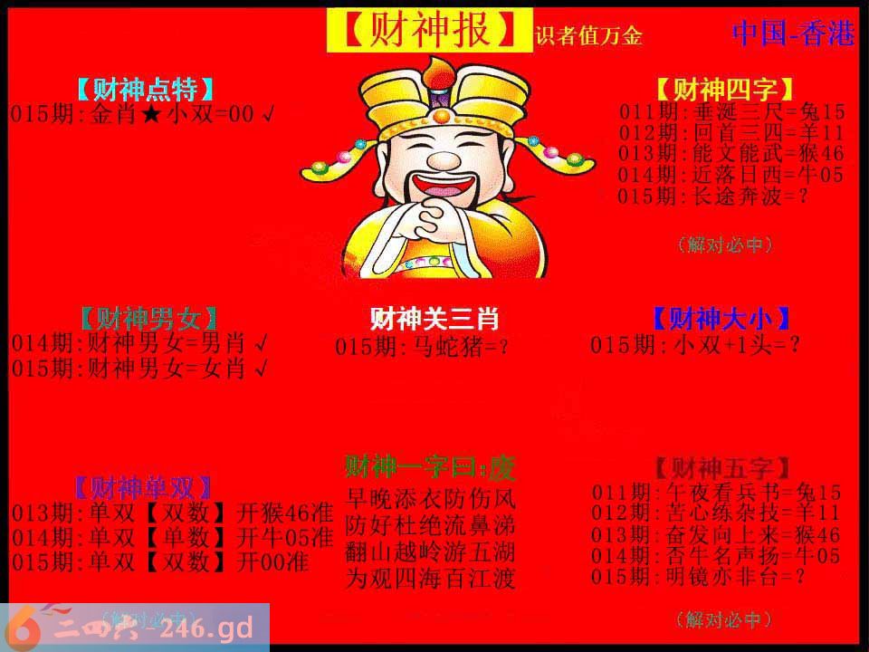 六合彩015期:红色财神