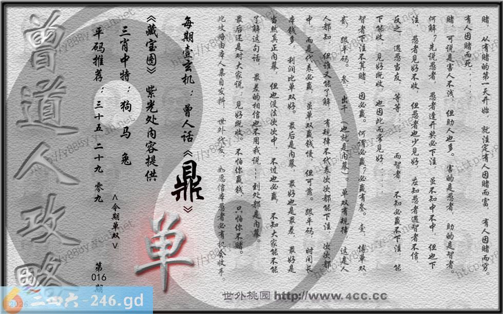 六合彩016期赢钱诀玄机诗:瞻前顾后一难寻,以逸待劳后跟二。