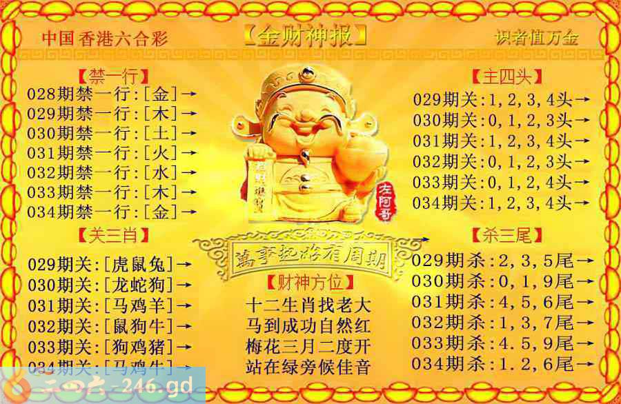 六合彩034期:金色财神