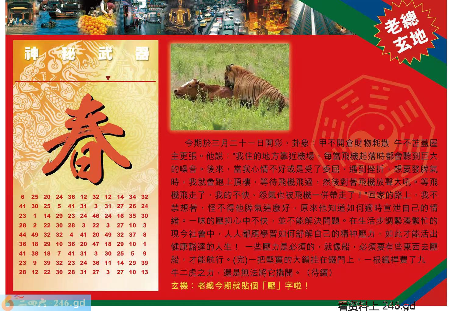 六合彩031期玄机来料:【网上三份特码资料大全】